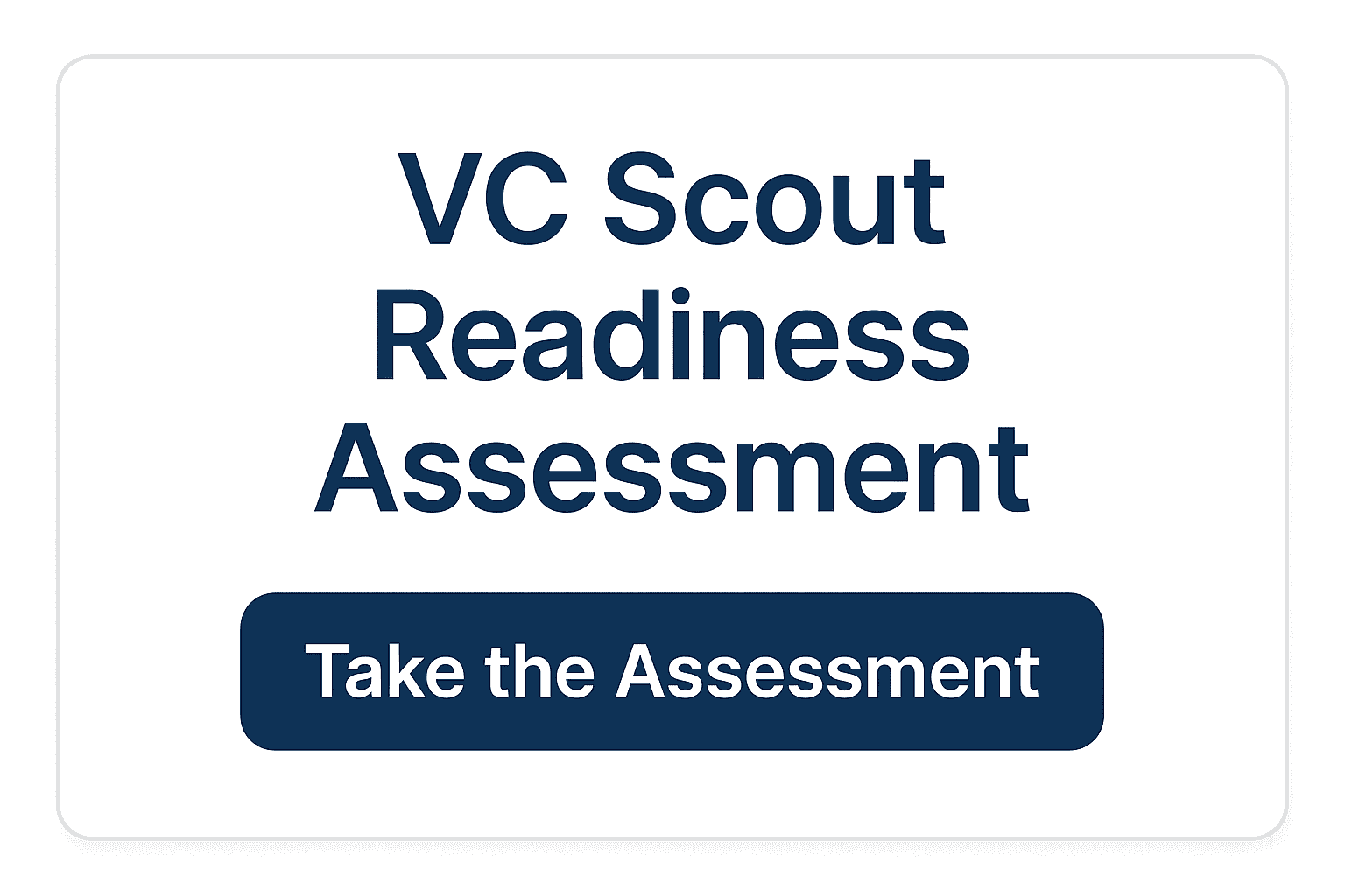 Take the VC Scout Readiness Assessment to evaluate your deal-sourcing skills, network strength, and venture ecosystem knowledge — and see how you stack up against what top investors look for in a venture scout.